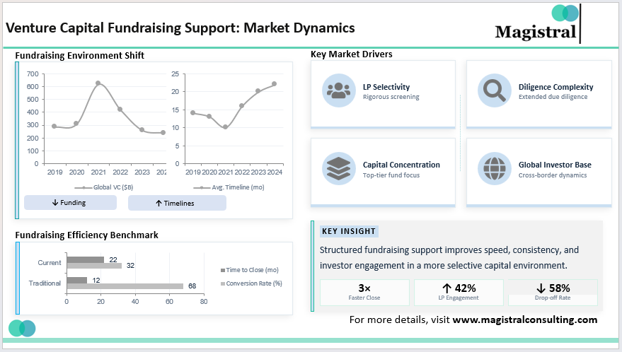The demand for venture capital fundraising support is directly linked to measurable shifts in fundraising performance, investor behaviour, and capital concentration. These changes are not temporary but reflect structural transformation in capital allocation dynamics.